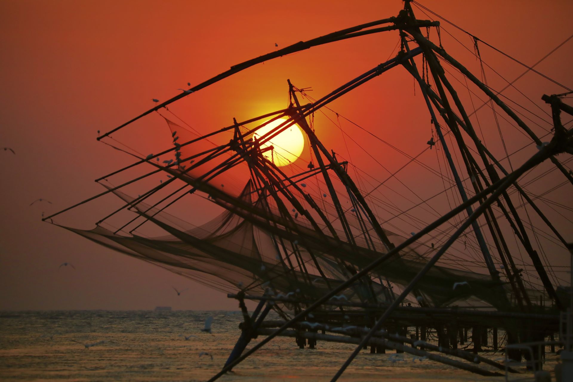 Embark on a magical sunset cruise in the backwaters of Cochin, an experience that promises serenity and breathtaking views. Step aboard a traditional houseboat or a luxurious cruise vessel and set sail on the tranquil waters as the sun begins its descent. Witness the mesmerizing interplay of colors in the sky as the sun paints a stunning backdrop of orange, pink, and gold. Cruise along the scenic canals, lined with lush greenery, swaying palm trees, and quaint villages. The gentle breeze and the soothing sounds of nature create a peaceful ambiance that is perfect for relaxation and rejuvenation. This is a private cruise (without guide)around the harbor. The 2 hours cruise takes you past few small islands and the fishing dock area where you can see truck-loads of fishes being loaded and un-loaded. You will see the fishing boats landing the fish and other harbor-life before the cruise ends with the view of the sun setting behind the Chinese nets.